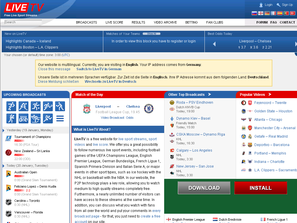 Livetv is a free website for live sport streams, sport videos and live score.we offer you a great possibility to follow numerous live sport events, including football games of the uefa champions league, english premier league, german bundesliga, french ligue 1, spanish primera division and italian serie a, or major events in other sport types, such as ice hockey …